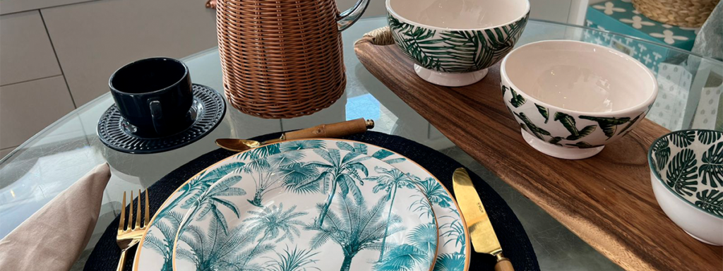 Boleira de Vime com Base e Pegador em Cerâmica Pássaro