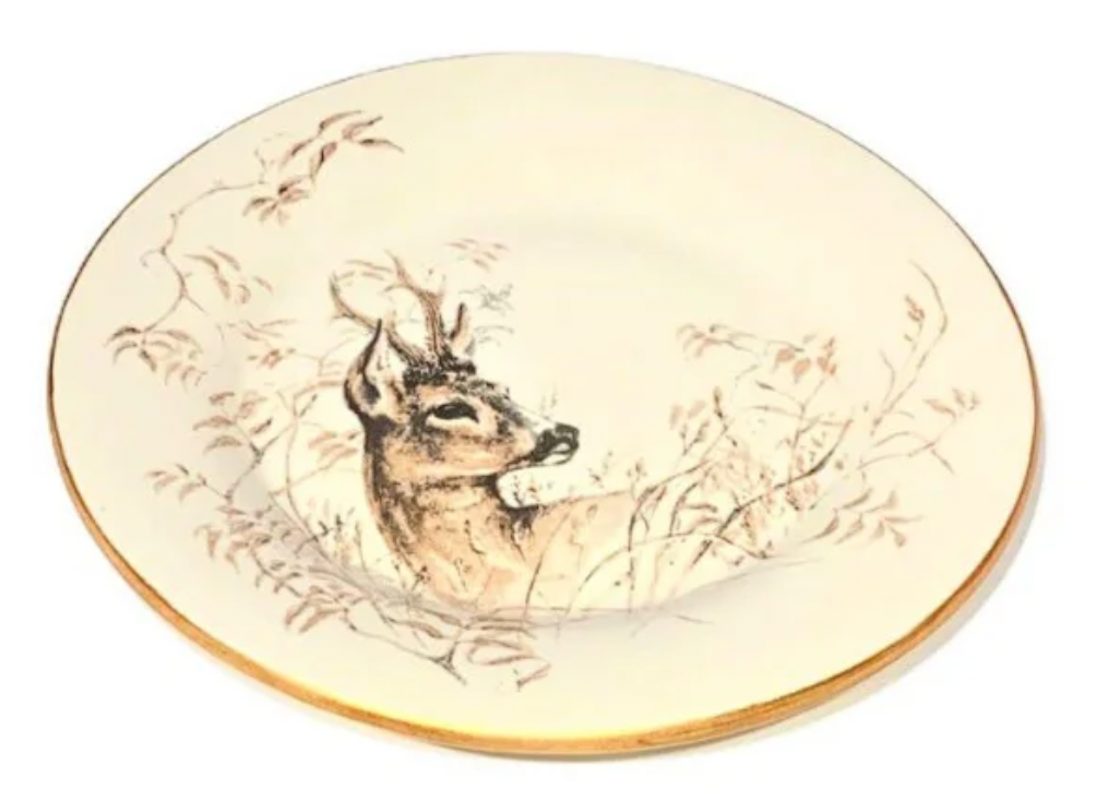 Detalhe em dourando. Peças em Cerâmica faiança, 100% artesanal de fabricação nacional, não refratária, produzida de acordo com as tradições da Indústria ceramista de Alcobaça / Portugal.